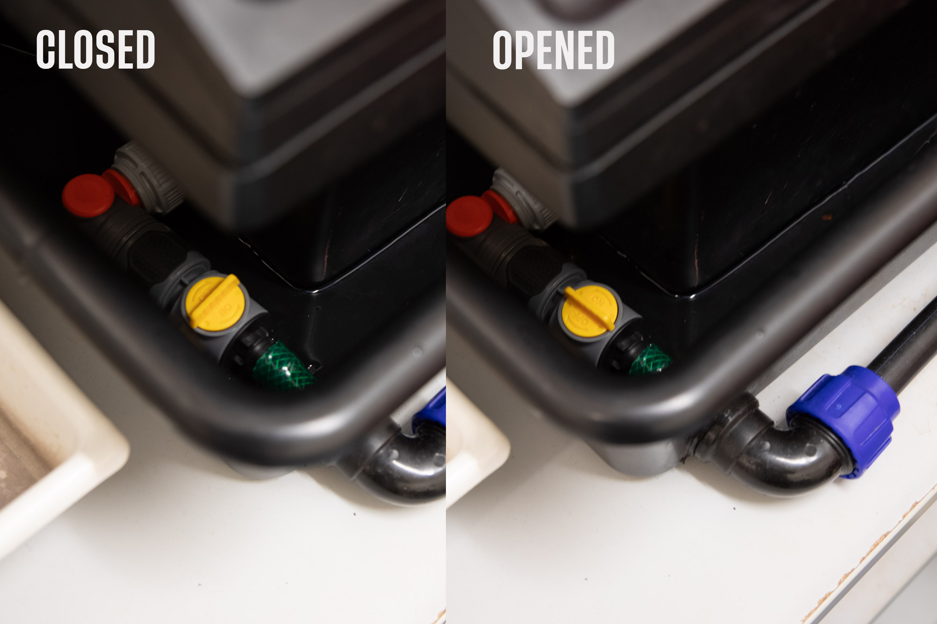 Empty the water bath by opening the drain under the processor.
