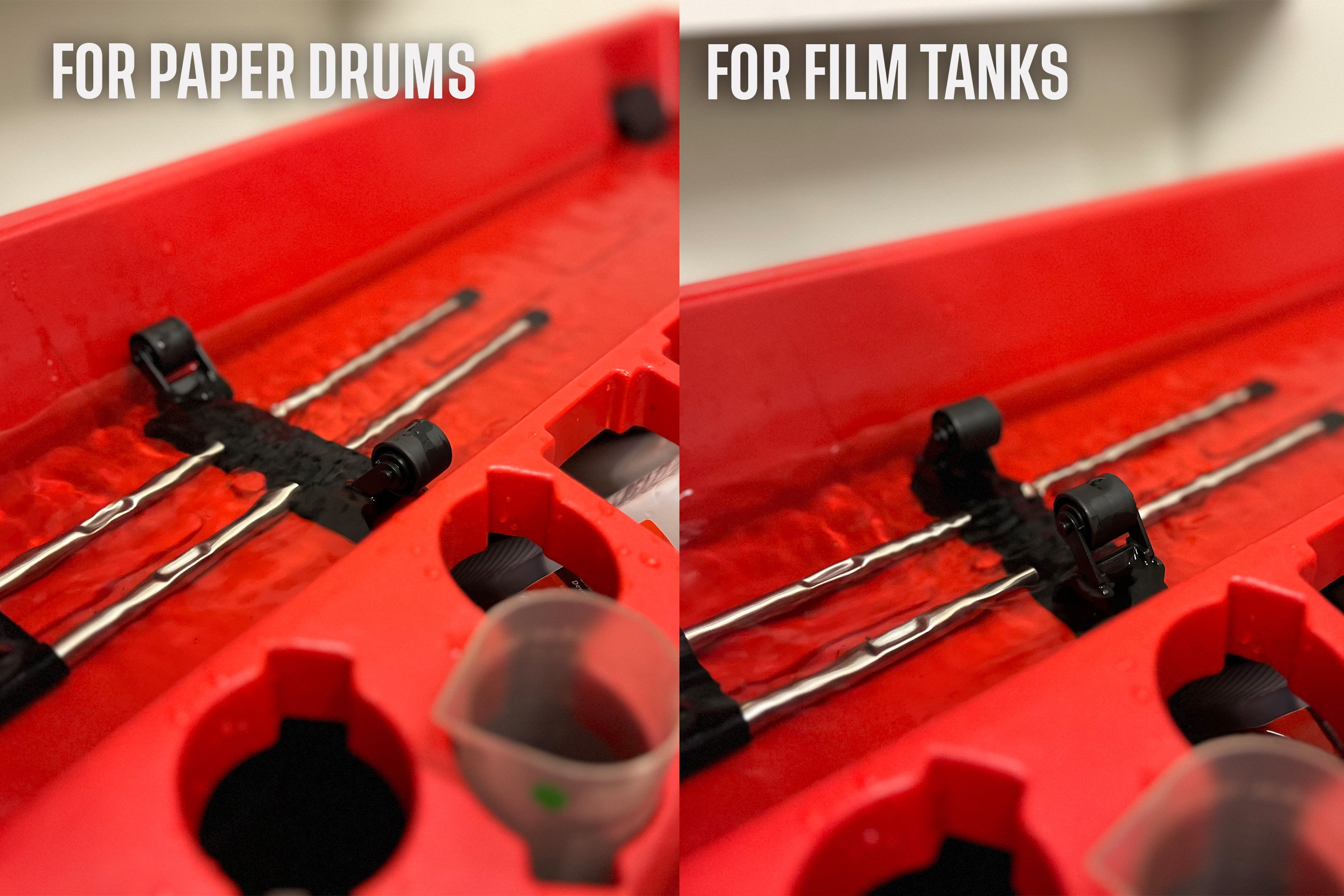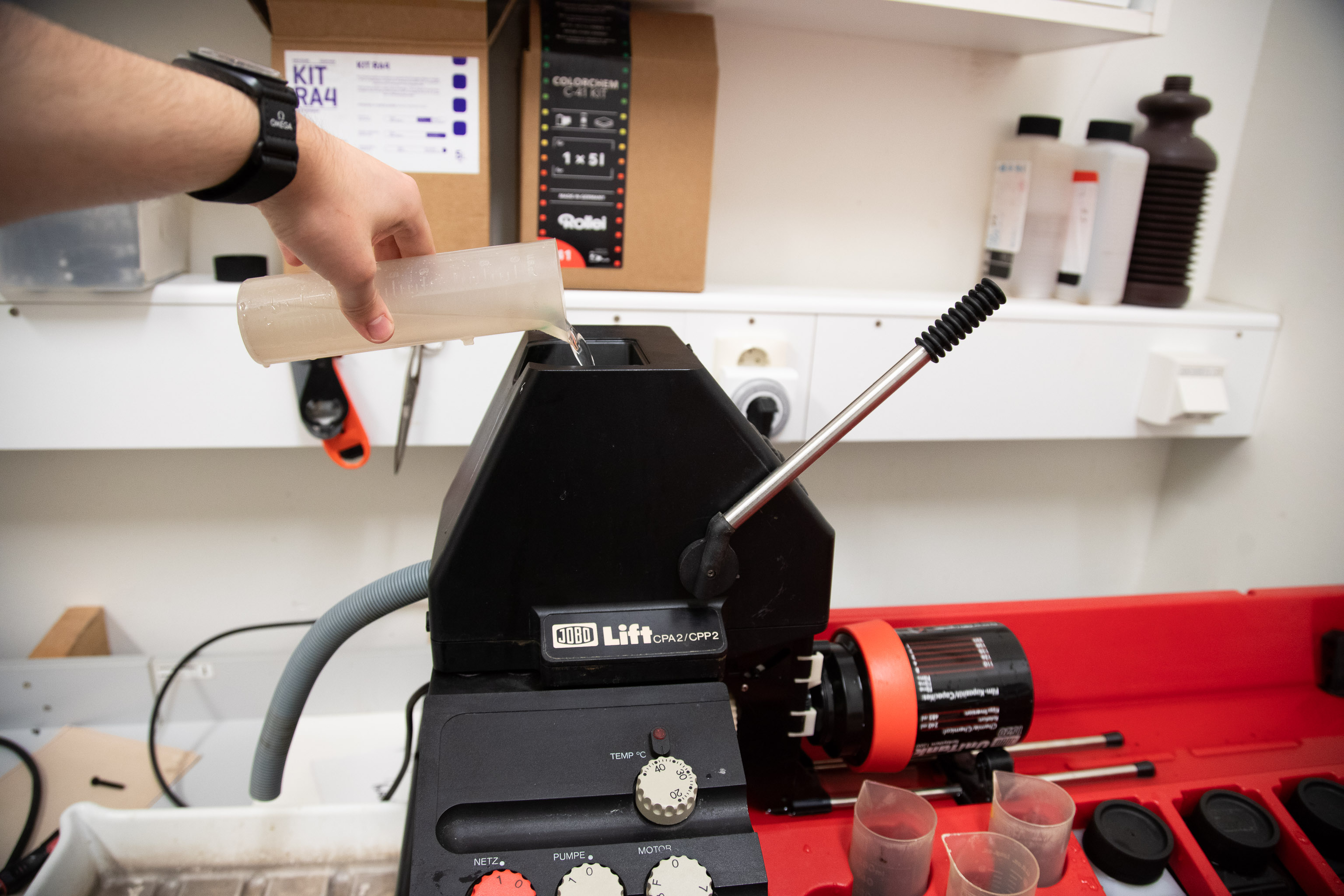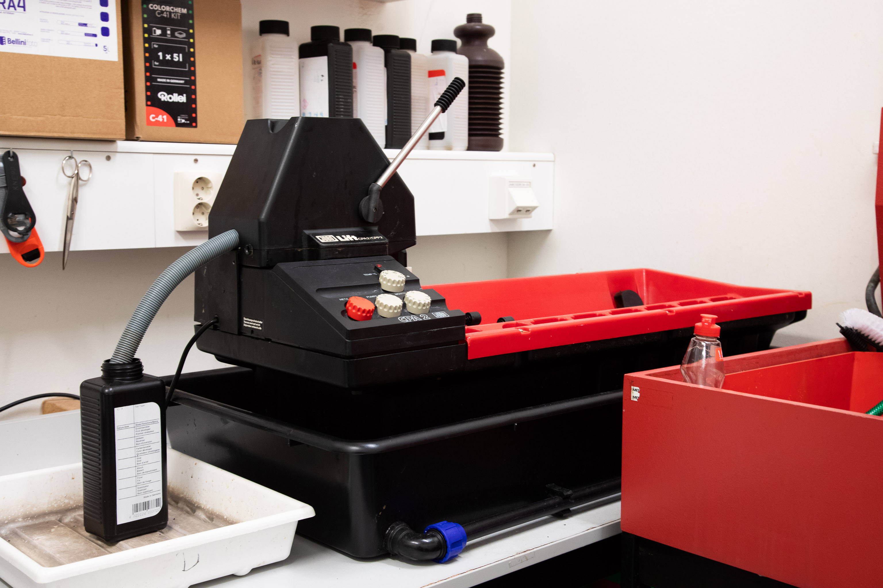 Ensure proper ventilation in the workspace.Check the C-41 developer usage chart before starting β replace chemistry as needed.