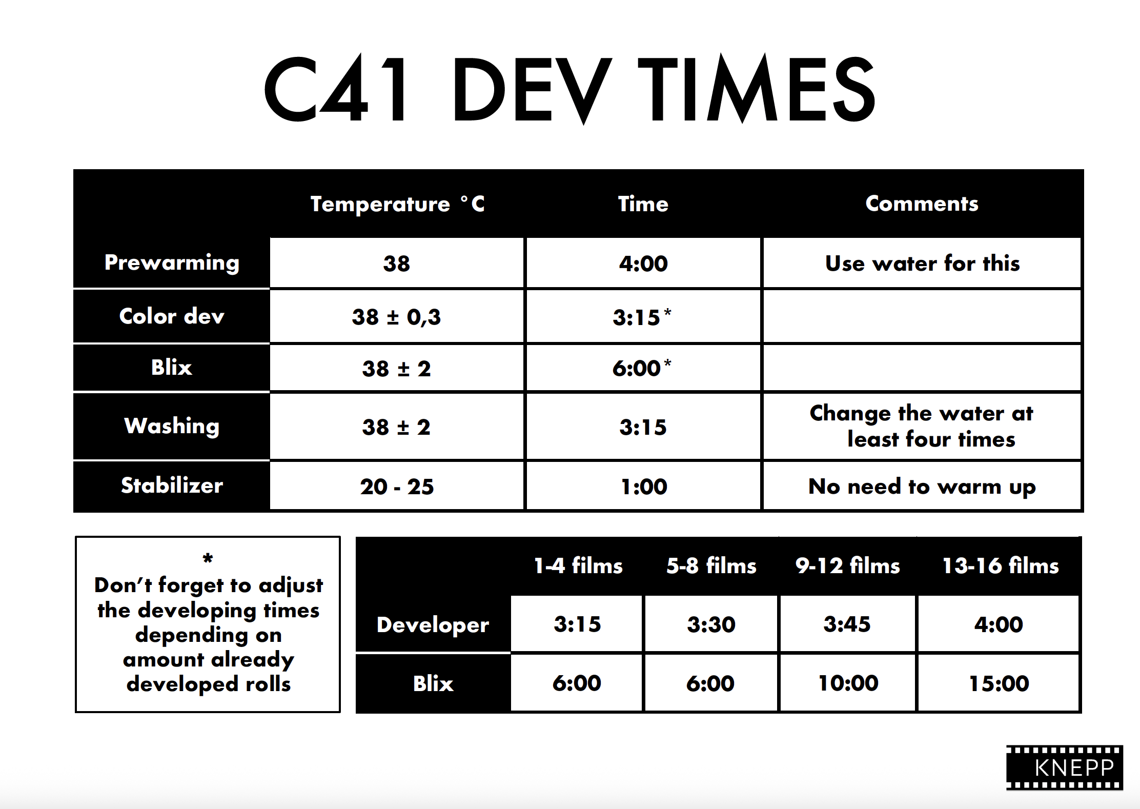 Don't forget to update the C41 dev chart, so we know when to prepare a new batch of fresh chemicals!